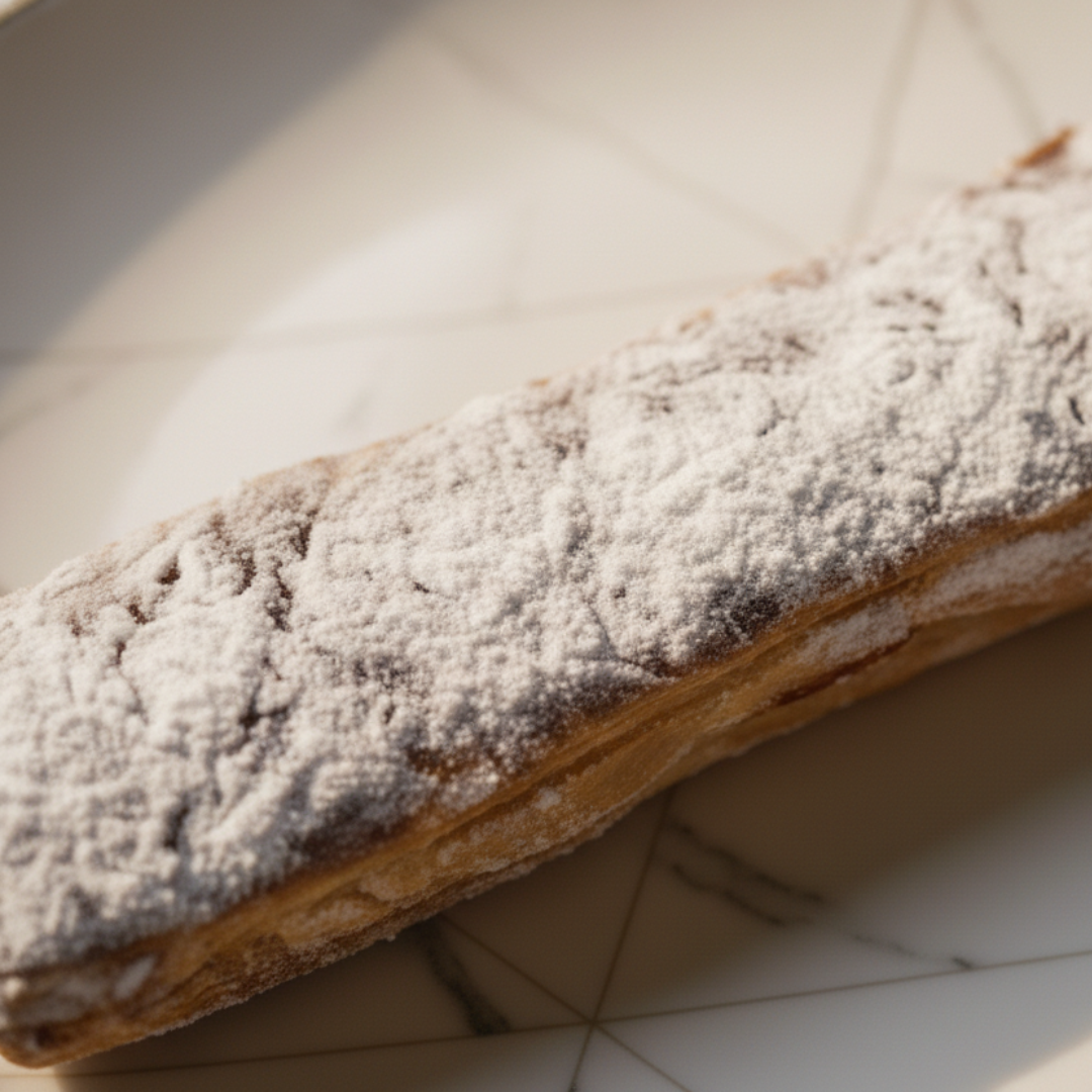 Hojaldre crujiente con relleno de dulce cabello de ángel.